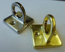 Aufhängeösen mit Bohrlöchern (inkl.Schrauben und Dübel):Zur Wandbesfestigung der Absperrseile mit Karabinerhaken.Edelstahl matt gebürstet: 7200Messing matt gebürstet: 7201Schwarz matt: 7210